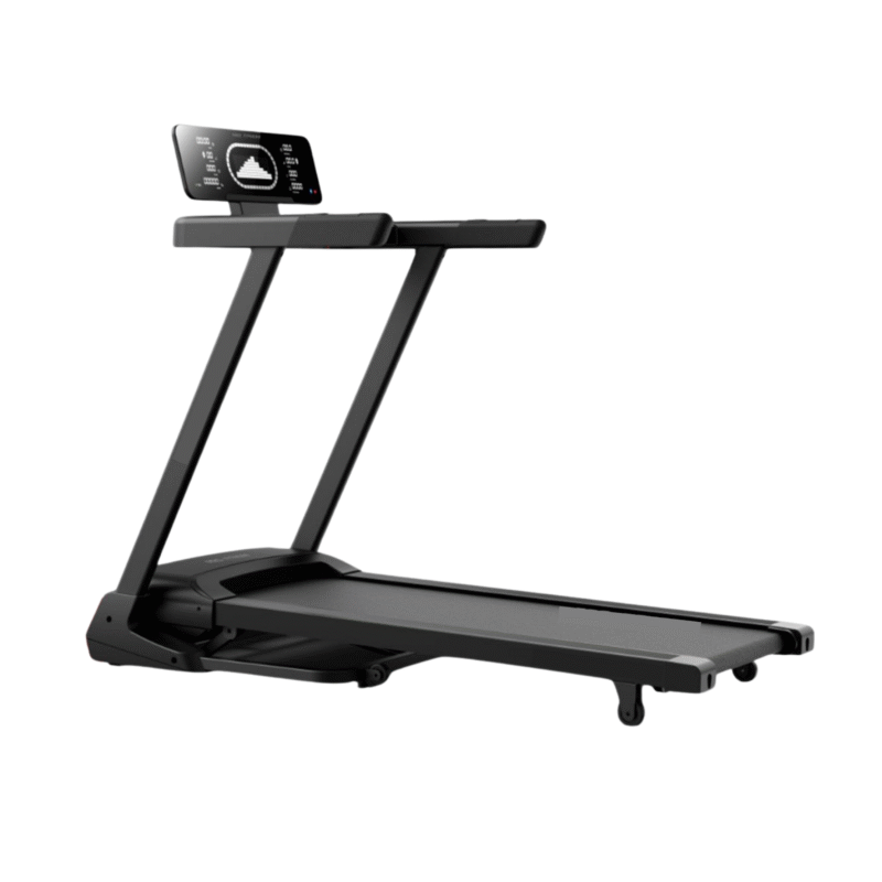Grâce à sa conception pliable et compacte, ce modèle prend un minimum de place dans votre appartement. Ses roulettes de transport permettent de déplacer l’appareil de fitness rapidement et facilement. Ses pieds intégrés assurent un rangement vertical optimal : inutile de poser le tapis de course sur vous.