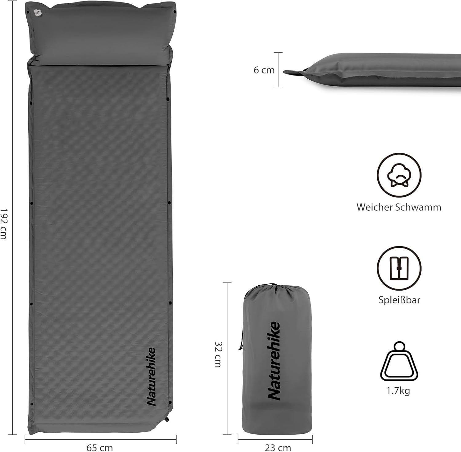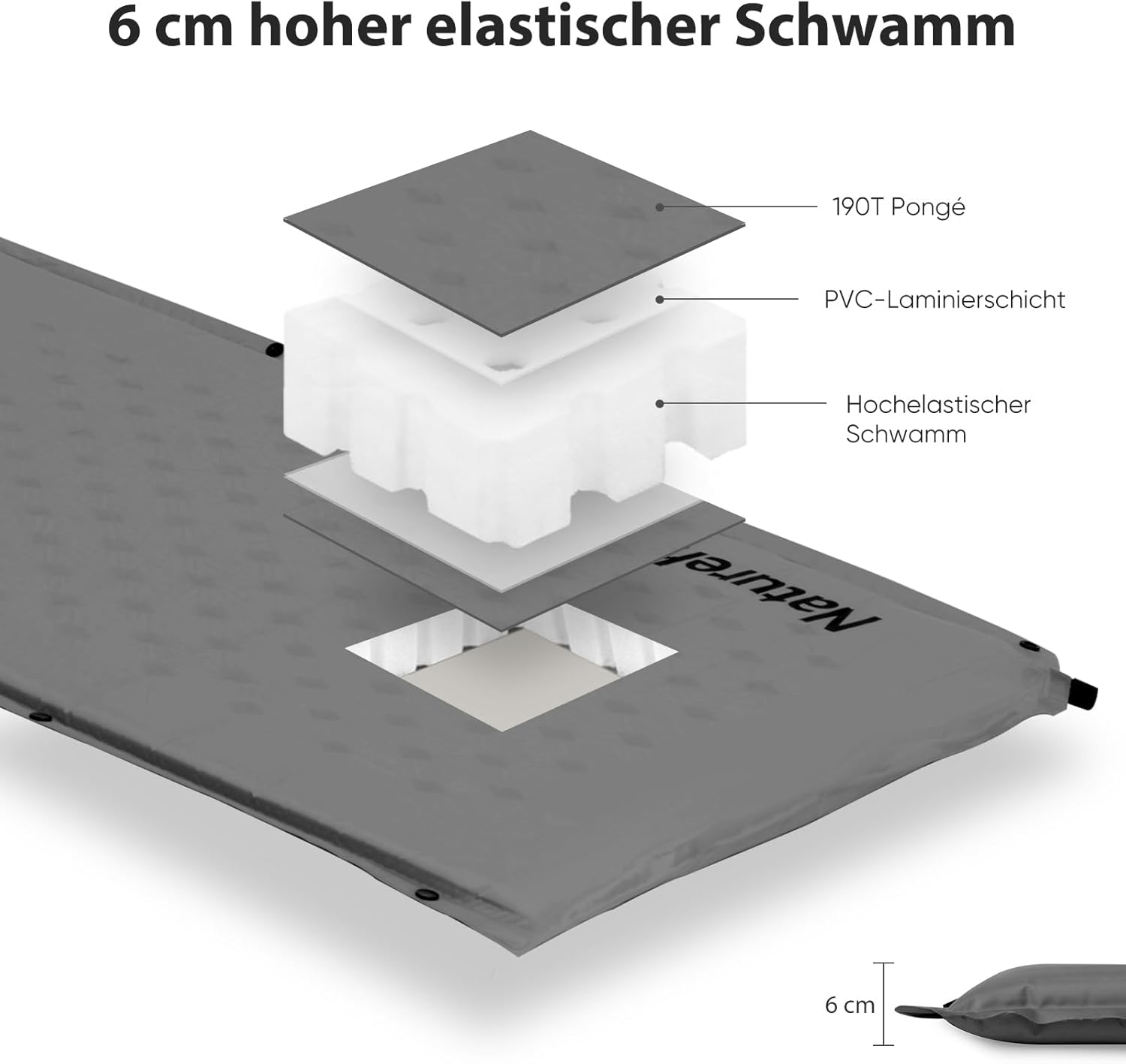 - Dimensions: This specific grey model is typically around 6 cm thick, providing good insulation and comfort on uneven ground.