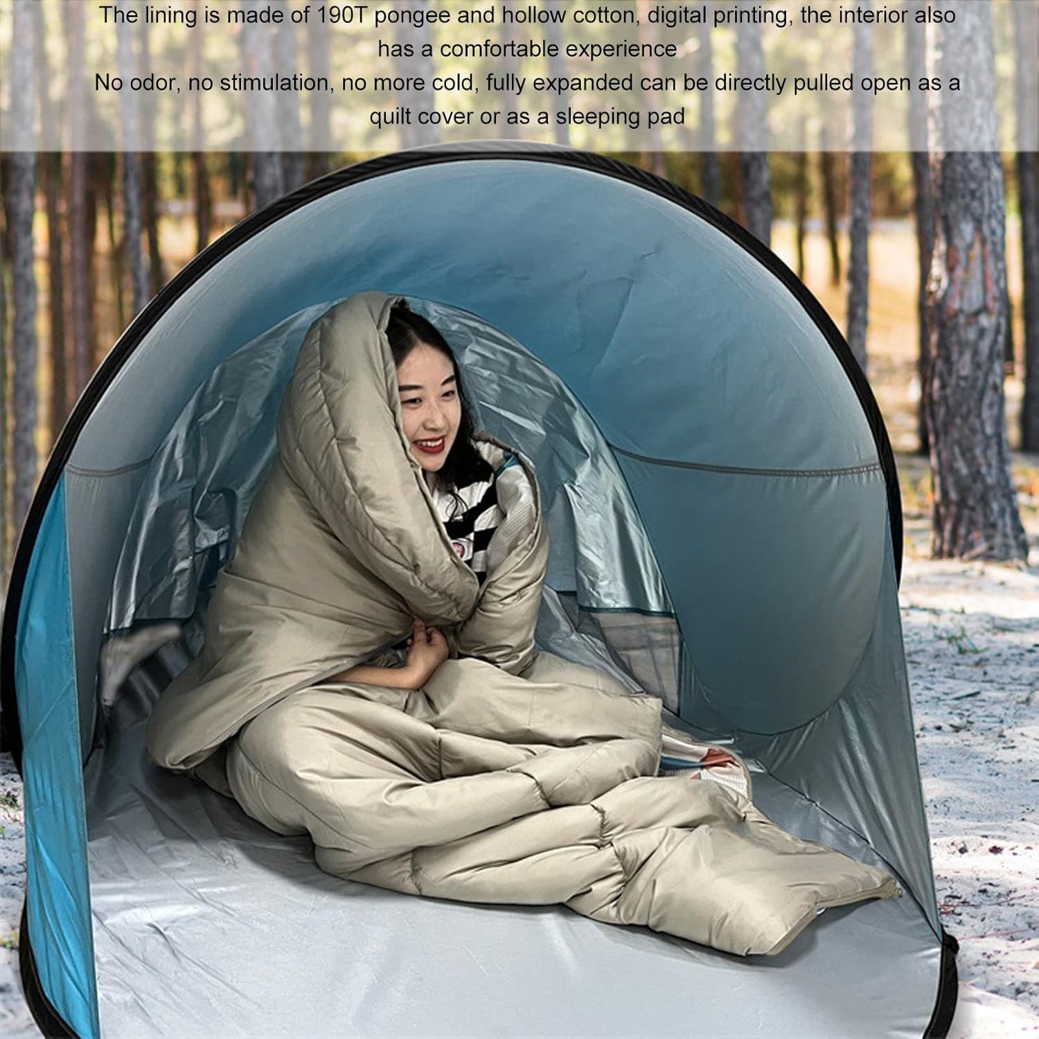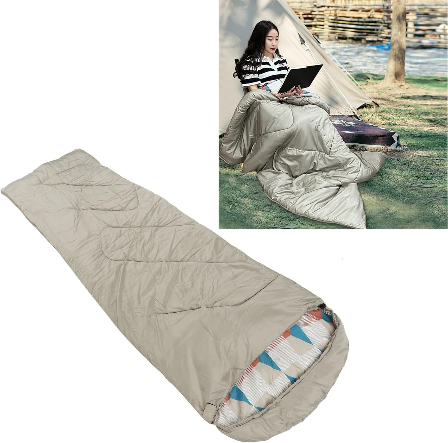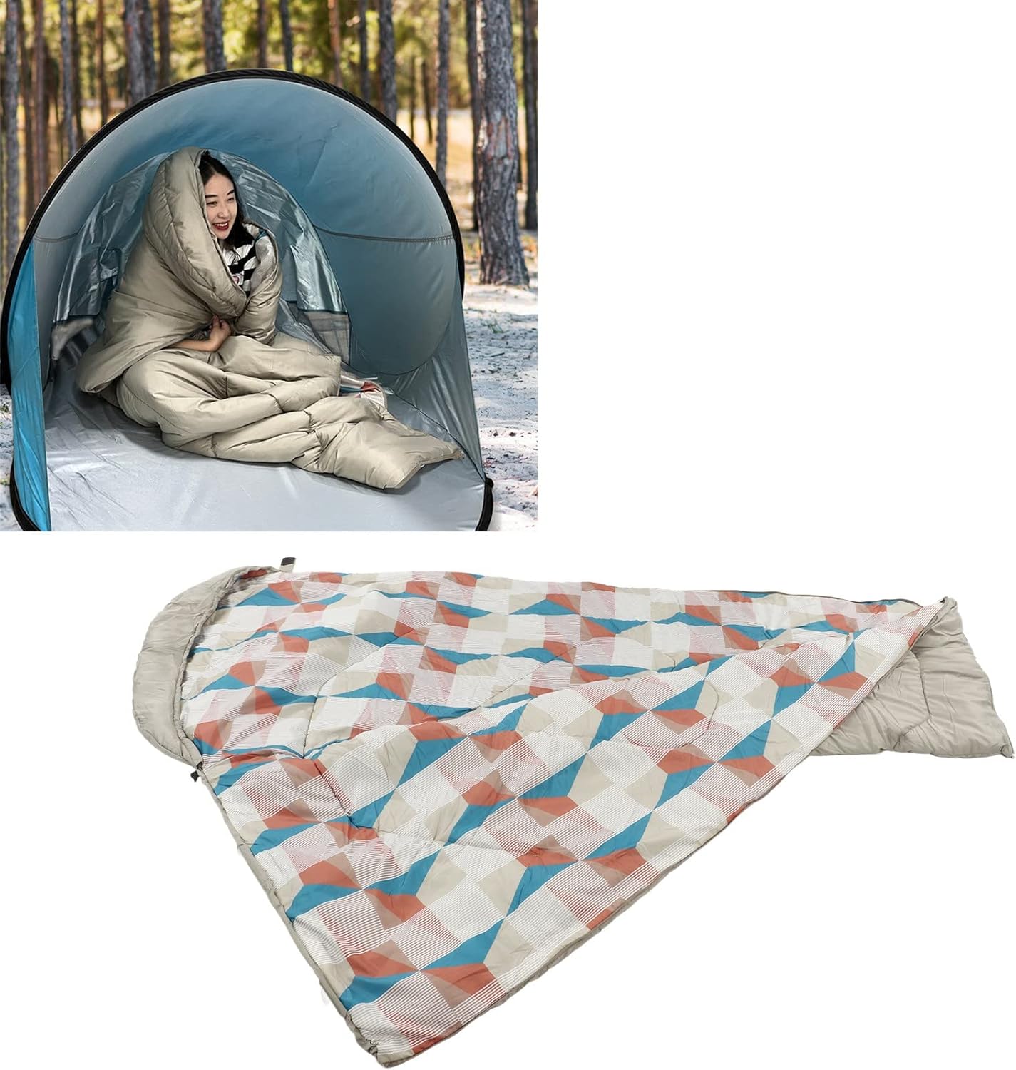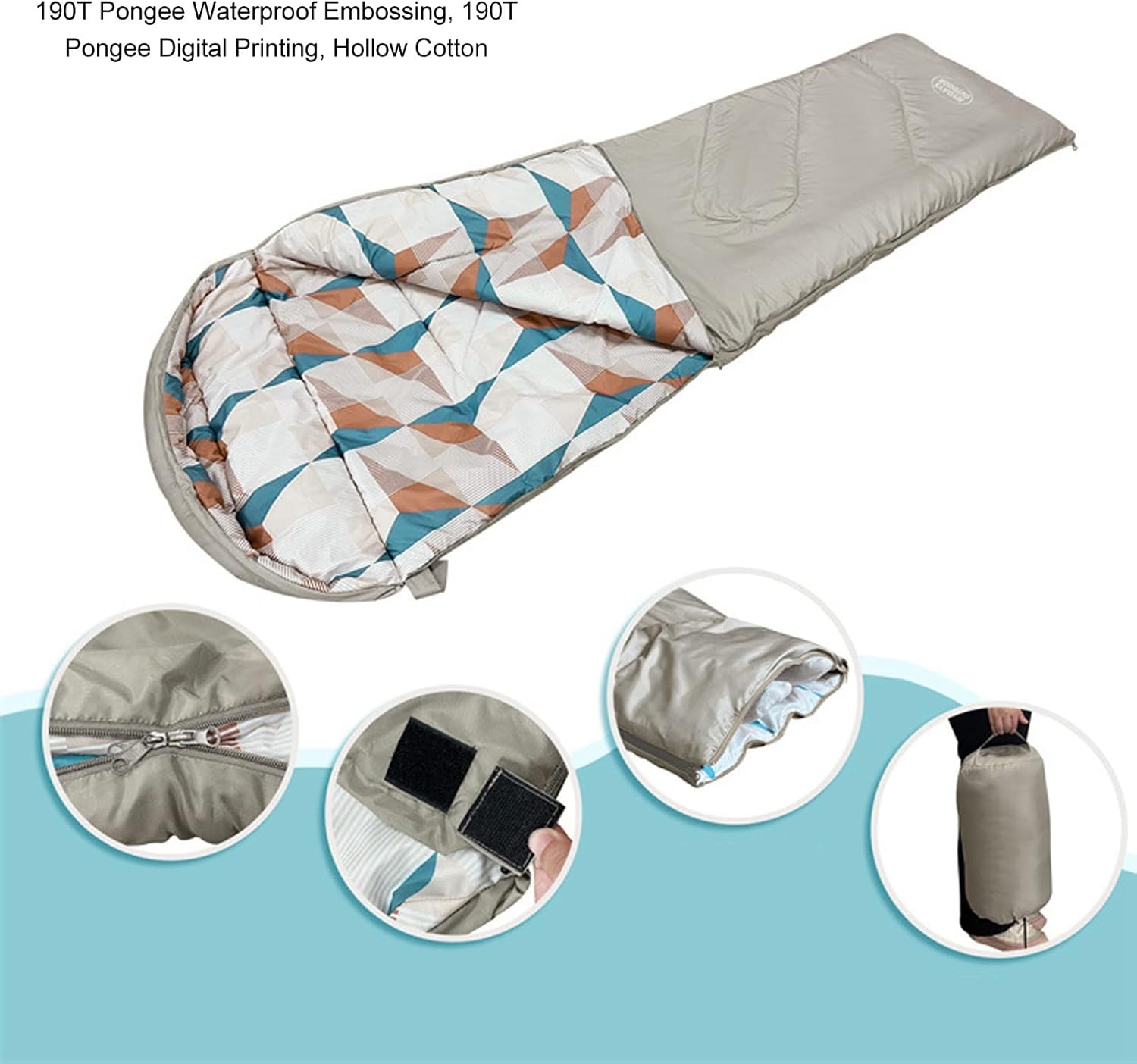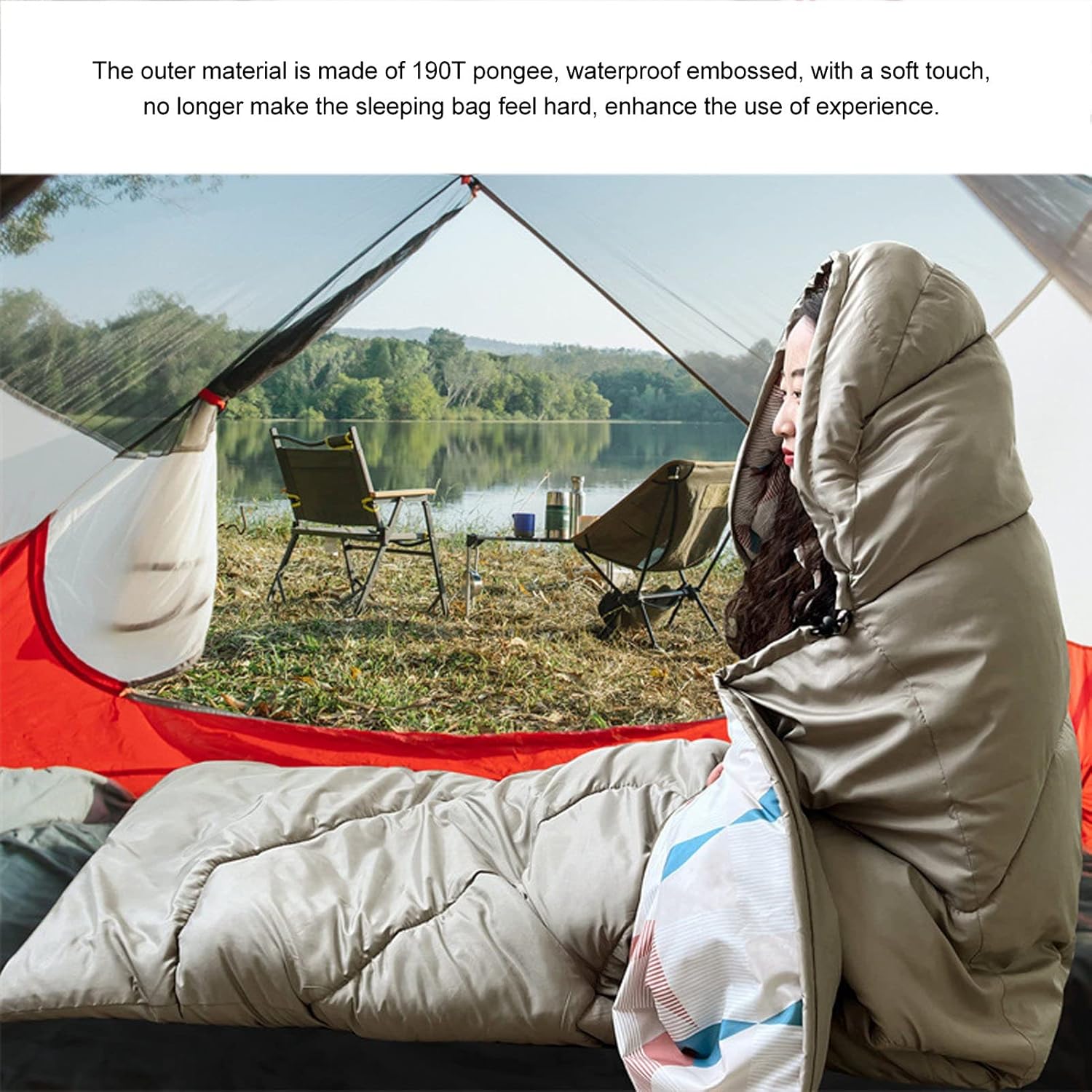 Elevate your outdoor camping experience with our Outdoor Camping Sleeping Bag Trapezoid Waterproof Warm Sleeping Bag with Hood for Adults Hiking Climbing! Crafted with high-quality 190T polyester pongee and hollow cotton, this sleeping bag offers superior comfort with its soft and breathable fabric. It can be easily machine washed, ensuring cleanliness and hygiene for repeated use. Whether you’re camping, picnicking, or simply using it at home, this sleeping bag is versatile and suitable for various scenarios. The user-friendly design, including the two-way zipper and hook and Cycle , enhances convenience and ease of use. Say goodbye to discomfort during outdoor sleeping with our premium camping sleeping bag, as it provides warmth and coziness even on cold and wet grounds.