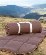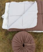 Le sac de couchage peut être ouvert entièrement pour s’utiliser comme une couette. Il peut également être assemblé avec un autre sac de couchage identique pour pouvoir dormir à deux.