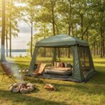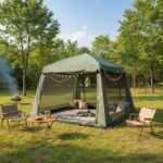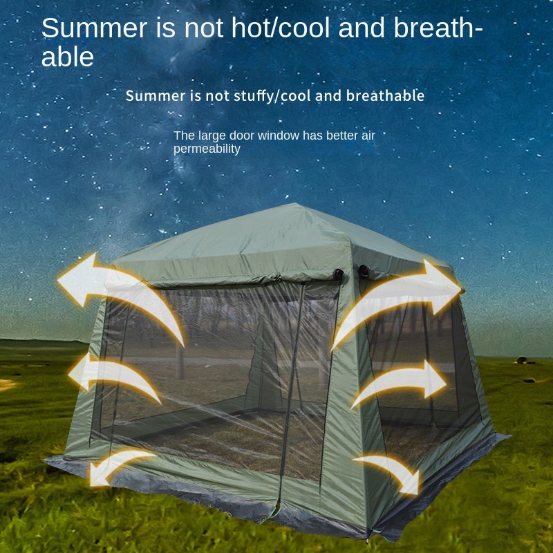 • Weather Resistance: Includes fabric panels/curtains that can be zipped shut during heavy wind or rain.